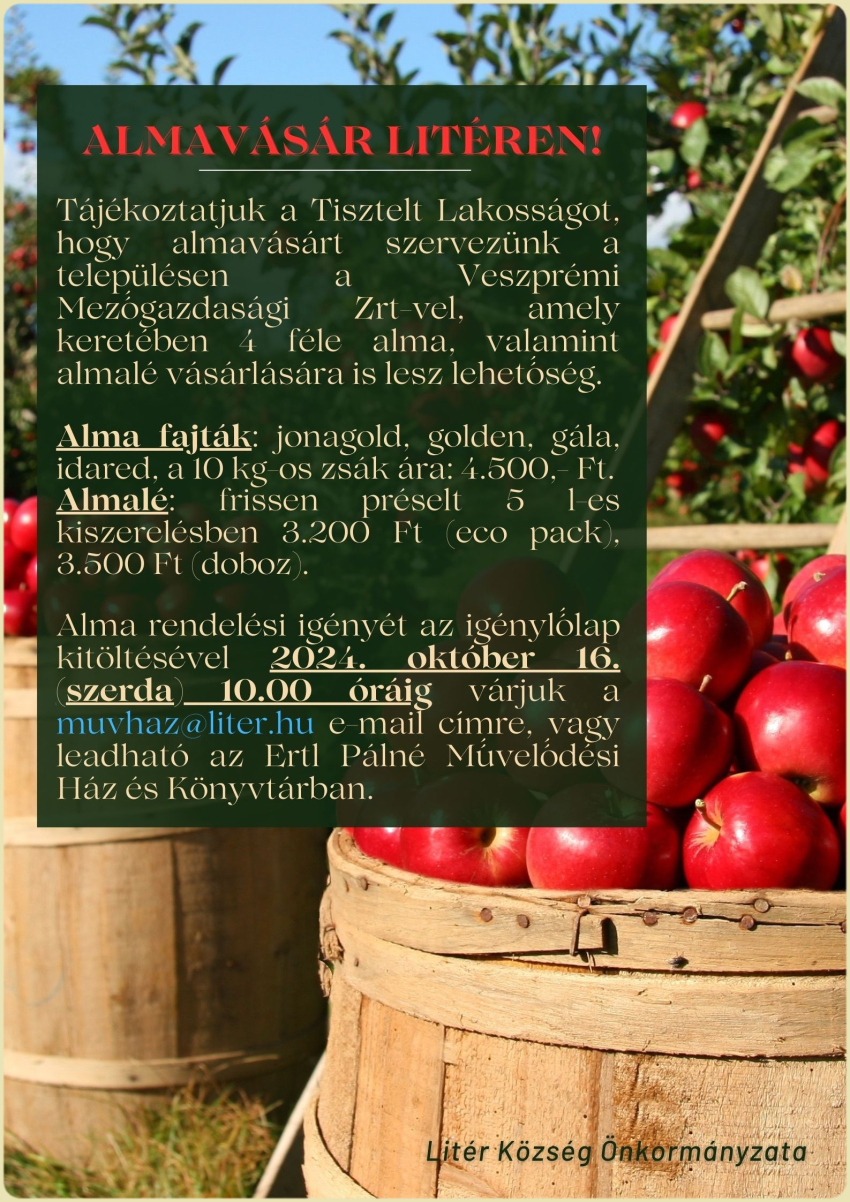 Rendelési igények leadása: 2024.10.16. 10.00 óráig!